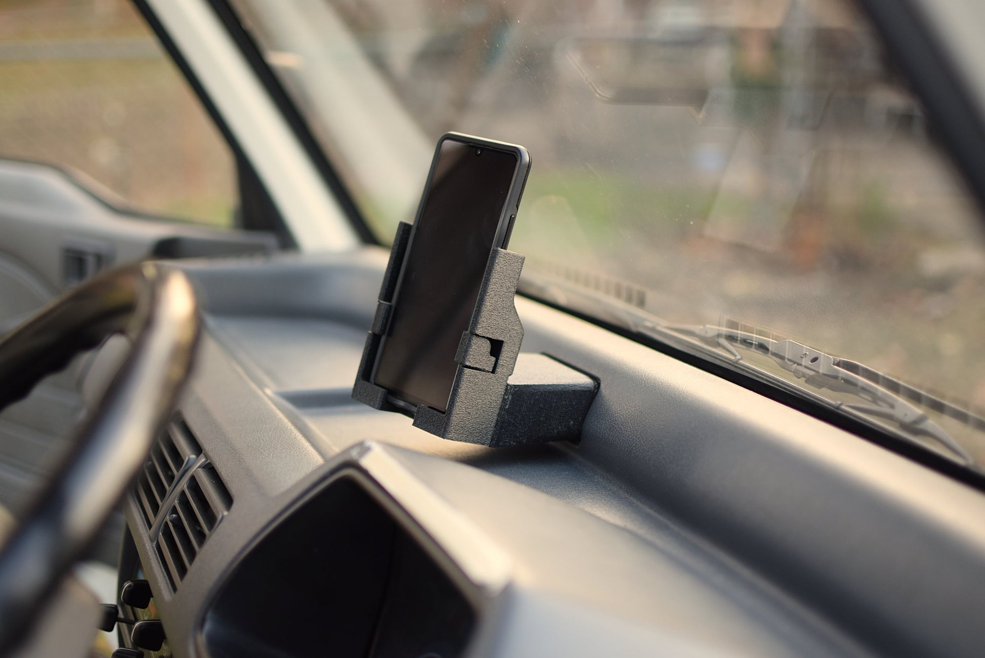 Cellphone mount for the Honda Acty! This Phone Holder for the Acty is a great accessory. It is a very solid mount that wont come unstuck from the windshield or bounce around when driving.